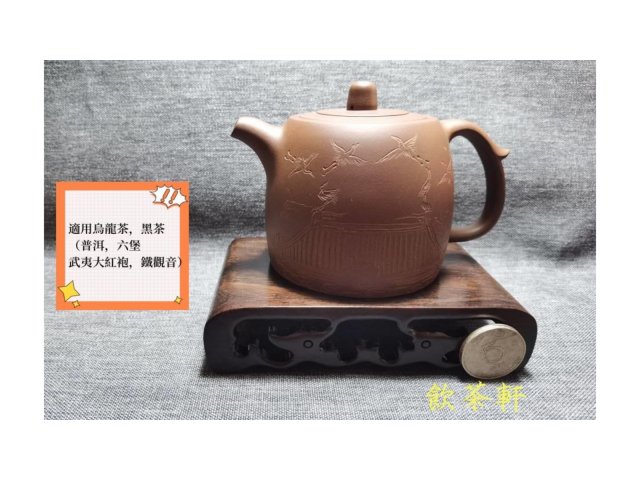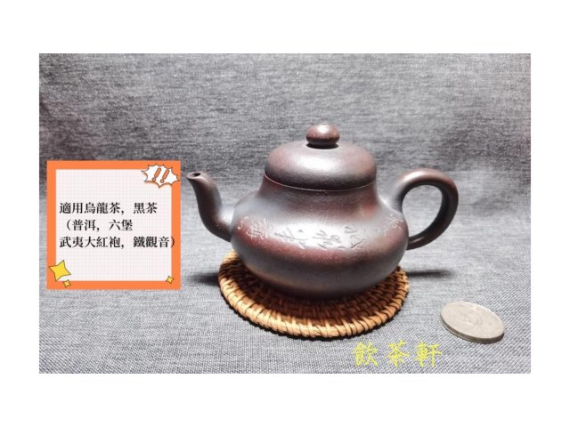 宜興紫砂 小煤窯朱泥 高瓢 蘭花刻繪 60目 180ml 附壺繩