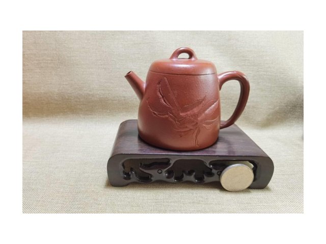 朱泥 德鐘壺 改良版斗笠蓋 蟬與竹描金刻繪 70目 160ml