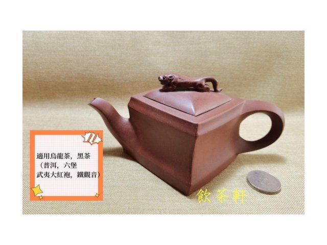 宜興紫砂 龍山礦大紅袍 六方瑞獸壶 電窯燒 70目 280ml 附壺繩