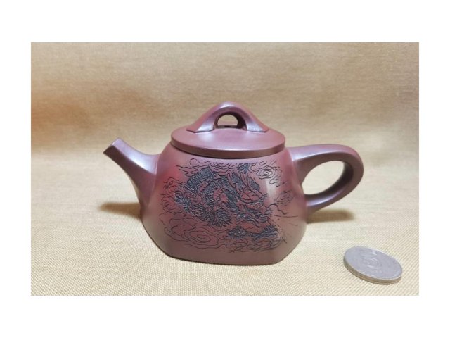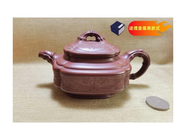 宜興紫砂 龍血砂 六方井欄 推版窯燒 紫氣東來 80目 300ml