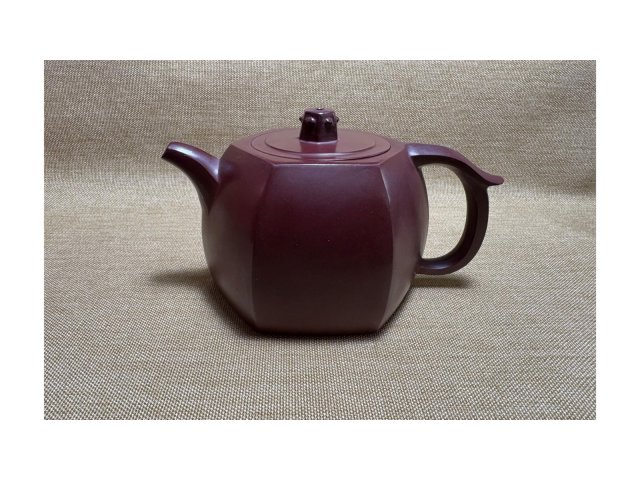 宜興紫砂 菱形八方 紫泥 40目 280ml 附壺繩