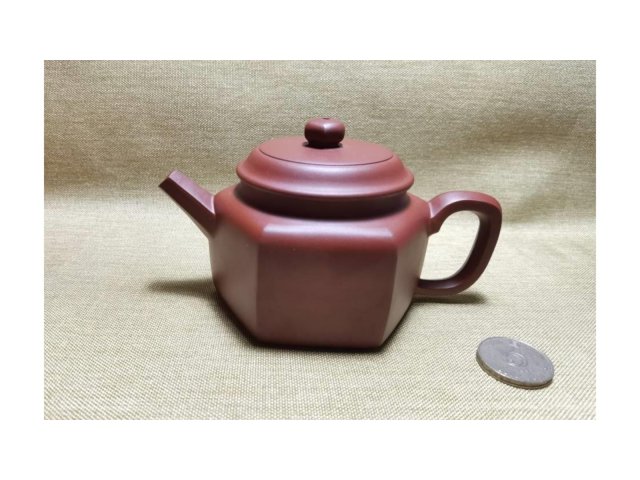 宜興紫砂 朱泥 六方文旦 70目 210ml 附壺繩