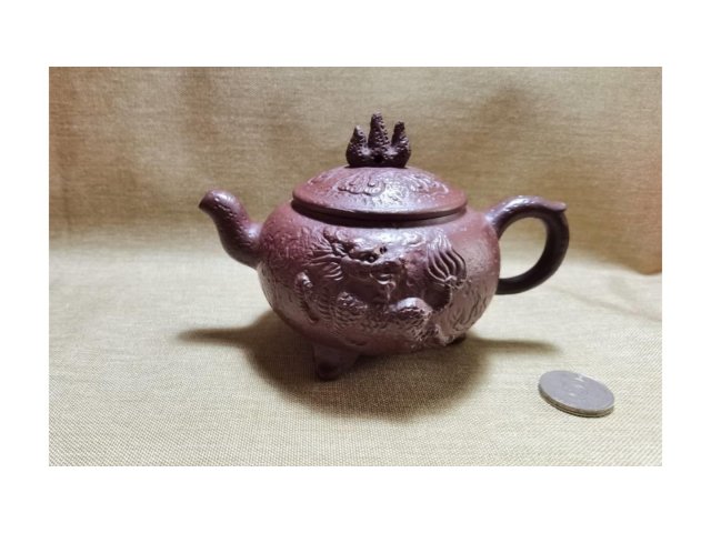 宜興紫砂 紫泥 三足乳鼎壺改良 滿雕麒麟 電窯燒 80目 300ml