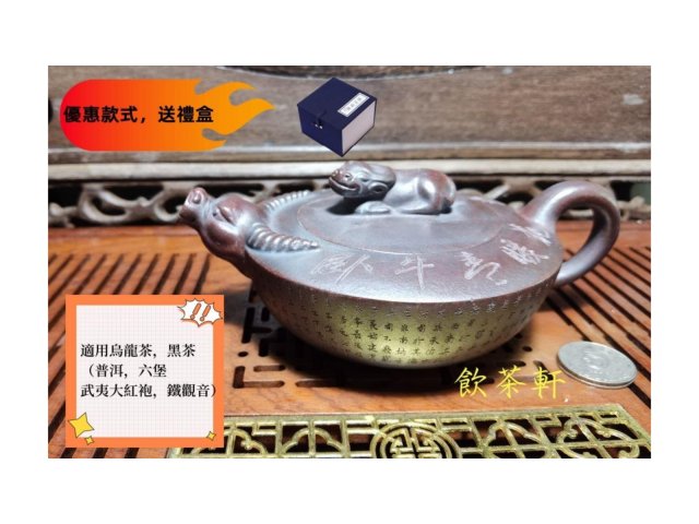 送禮盒 宜興紫砂壺 古紅泥 牛氣沖天 周盤 30目 300ml 全手工 附證書壺繩