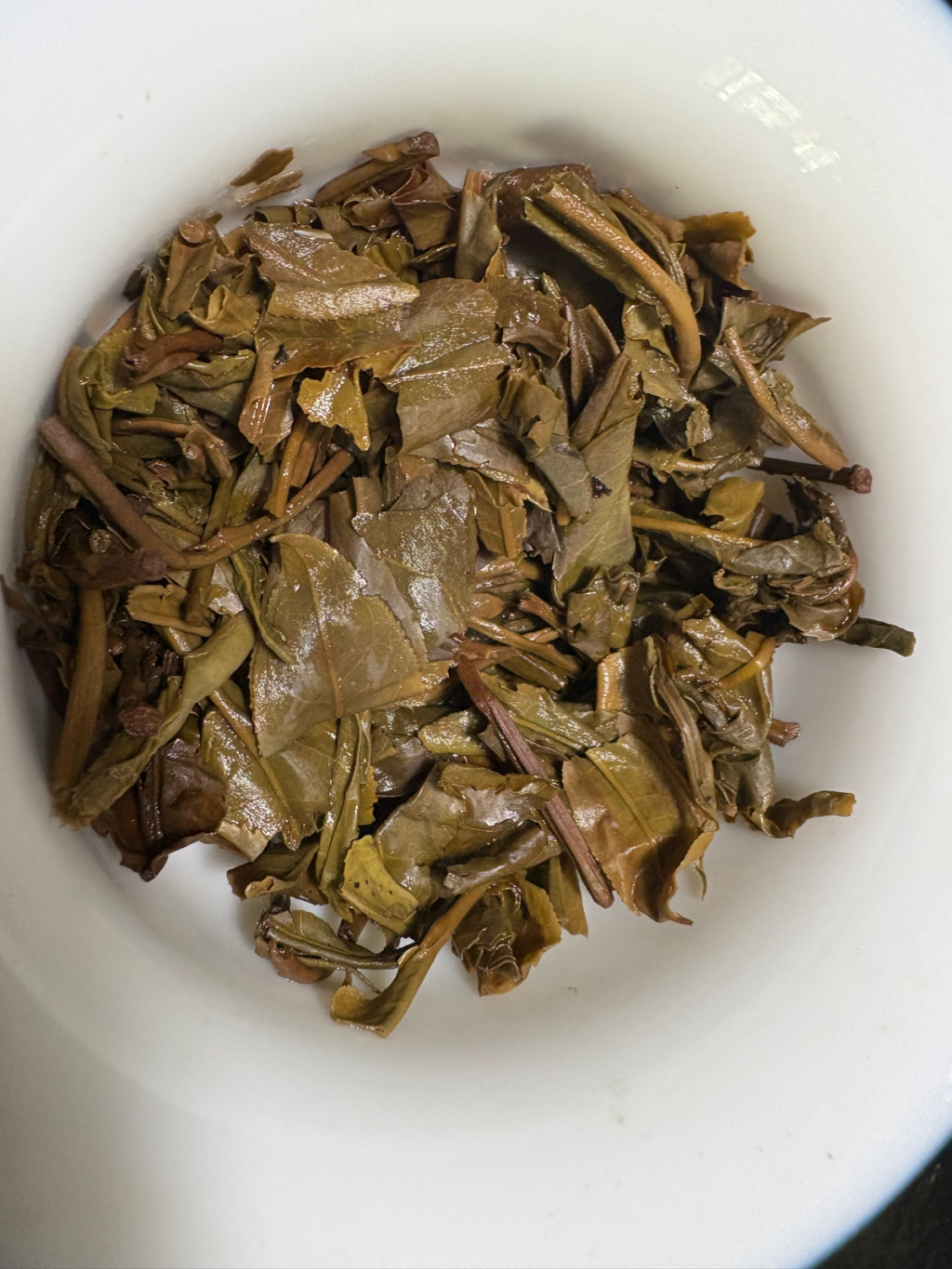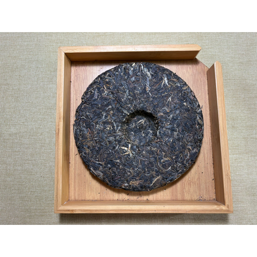 外形:茶葉經過手工揉制和傳統蒸壓,形成緊實的餅形外觀。葉底呈現出拼配痕跡,展示出其獨特的工藝特點。