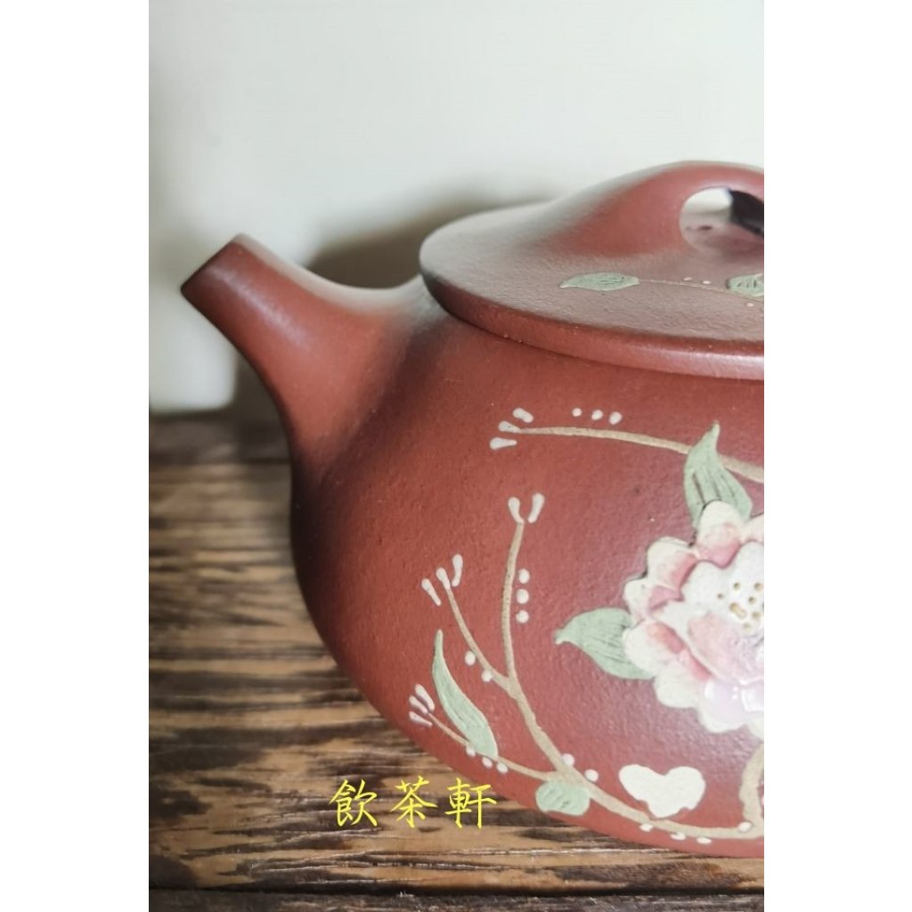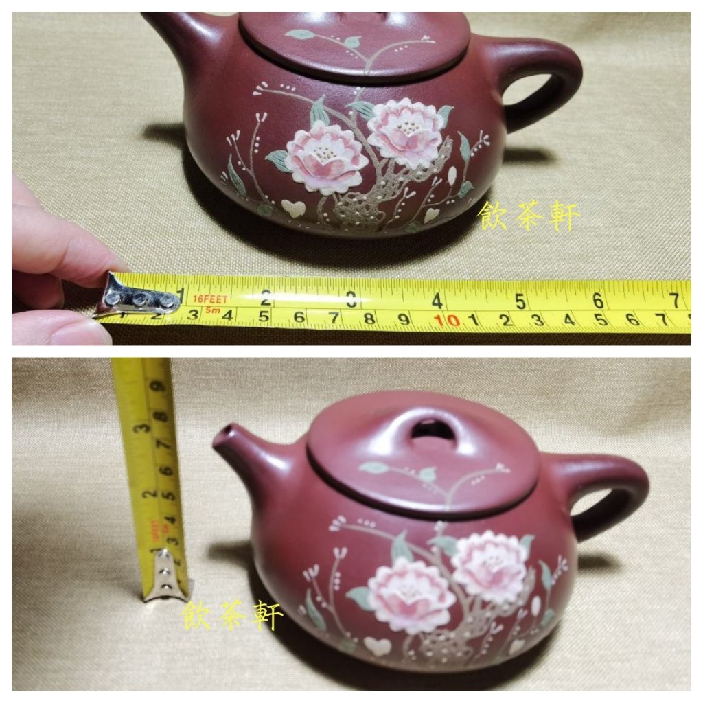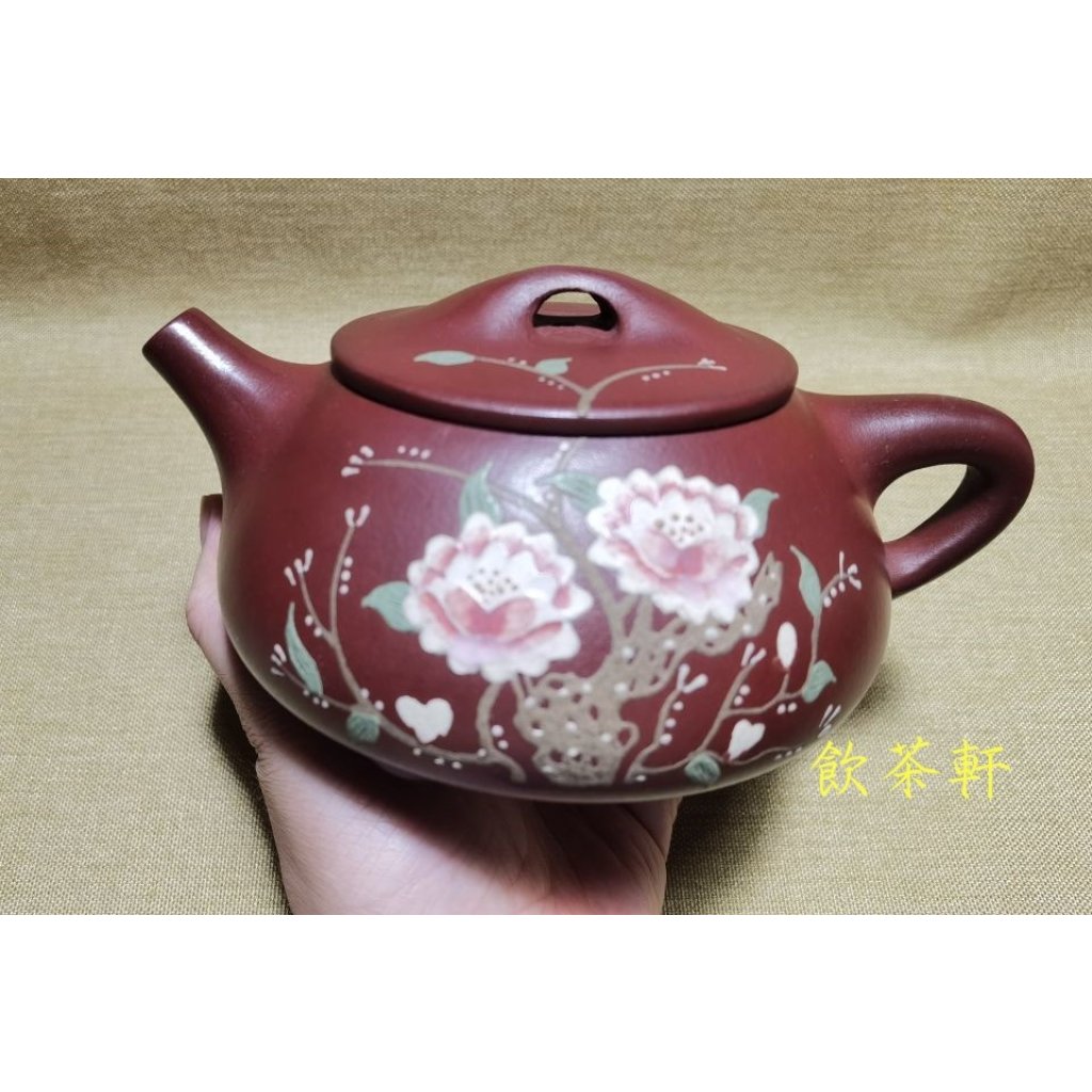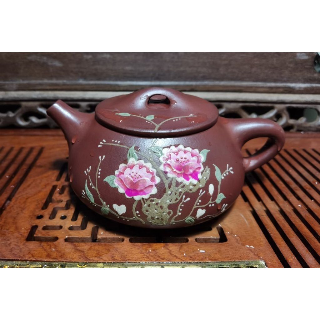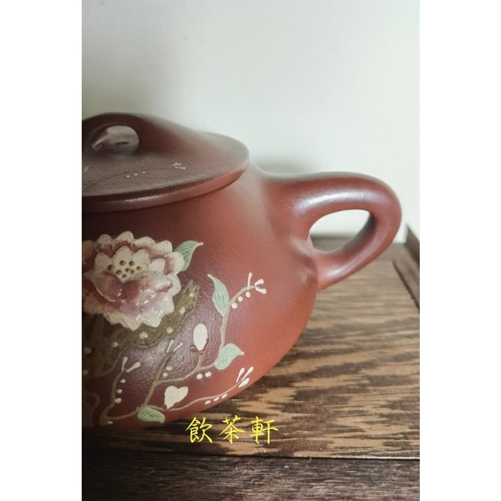 送禮盒 宜興紫砂壺 變色紫泥牡丹花 景舟石瓢 100目 容量 350 ml 全手工 附證書壺繩