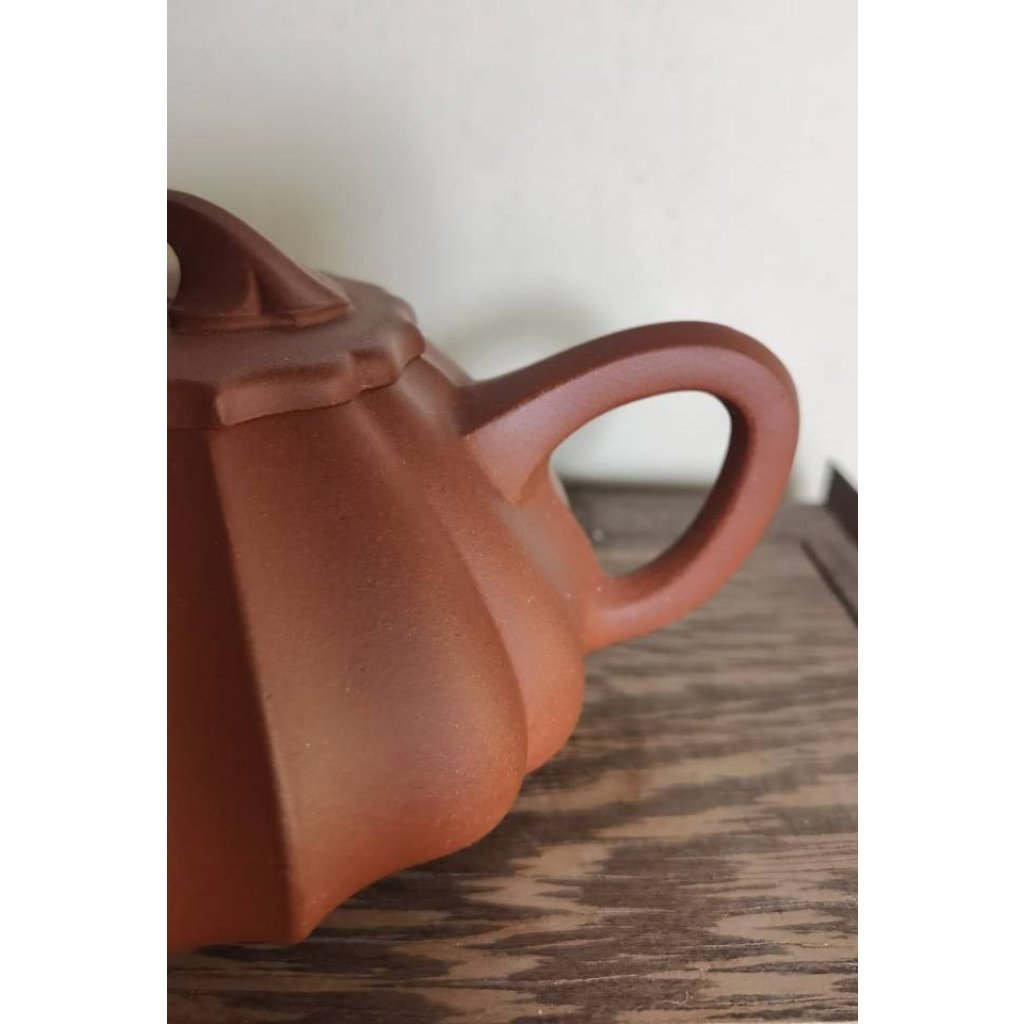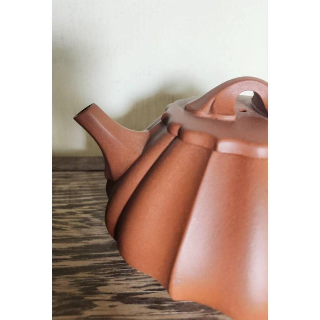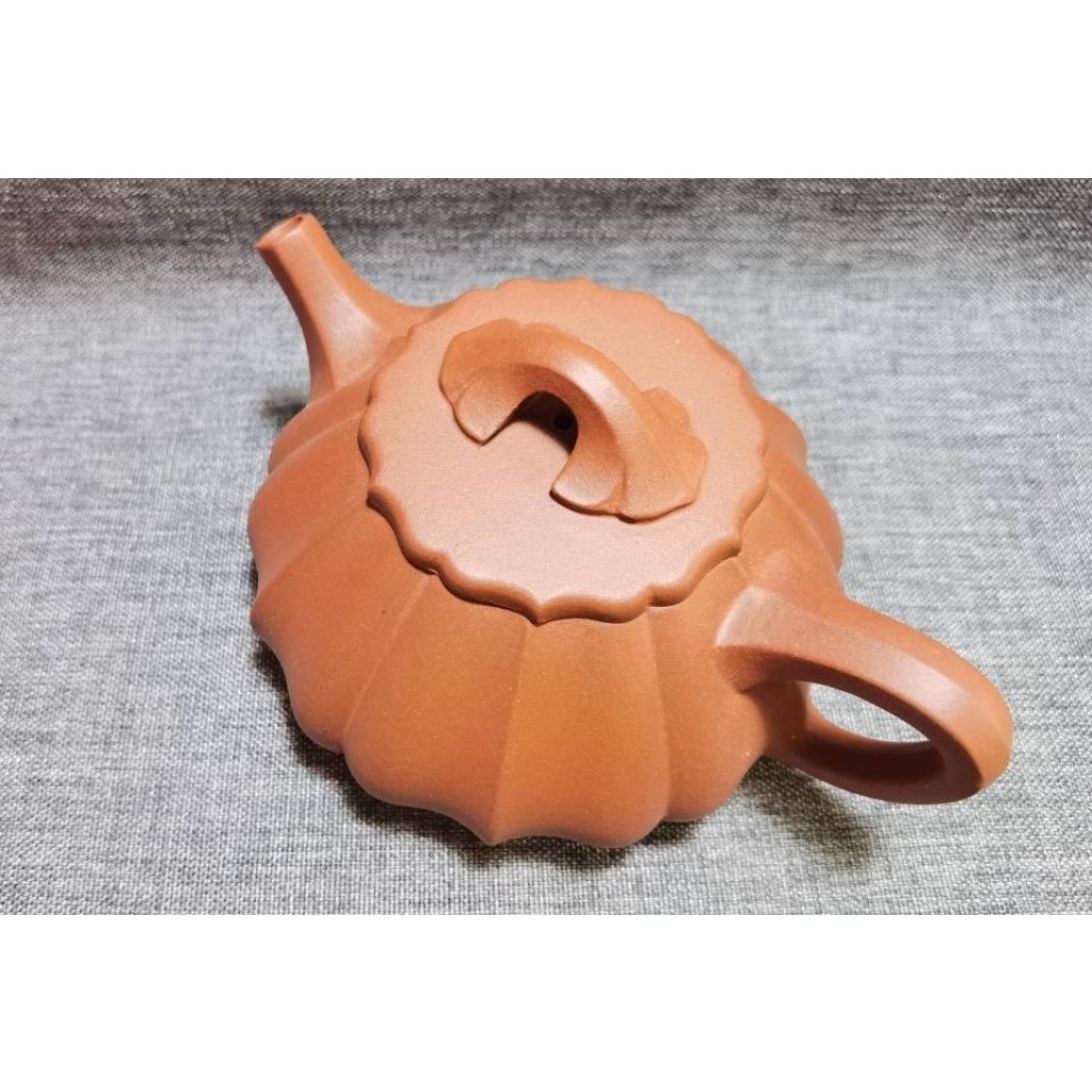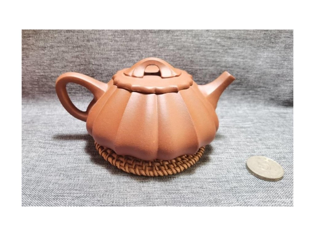 壺蓋頂部的瓣狀紋理和小巧圓環裝飾,與壺身相呼應,增添壺蓋的實用性與觀賞性。這樣的設計使得整把壺在視覺上更加和諧美觀,在使用時能夠感受到一份獨特的韻味。