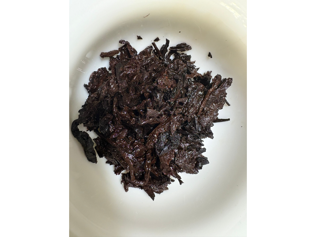 葉底:沖泡後的葉片肥厚柔軟,褐綠間金黃,輕揉不爛,彰顯古樹料底蘊。
