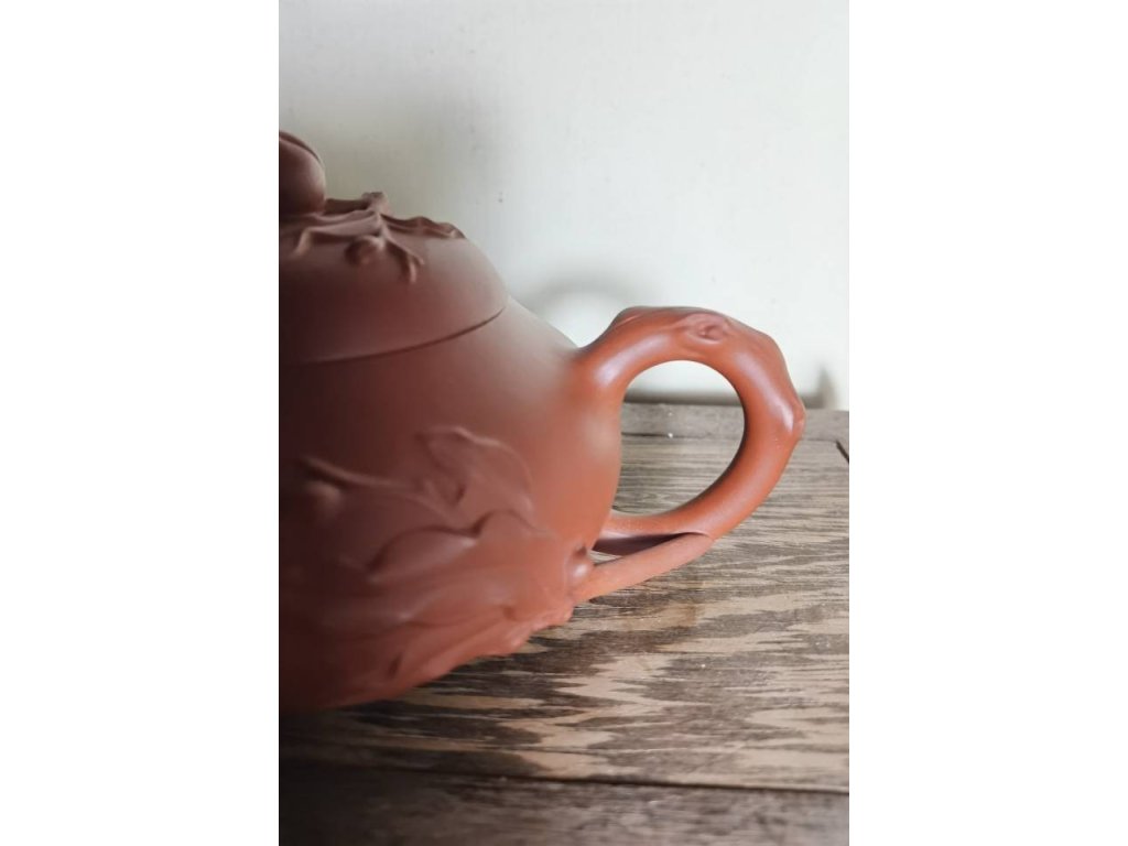 尤其是壺身上的花器浮雕,細膩入微,花瓣與葉子的線條流暢自然,將大自然的美麗與生機凝聚於一壺之間,為整把壺增添了無限的藝術韻味。