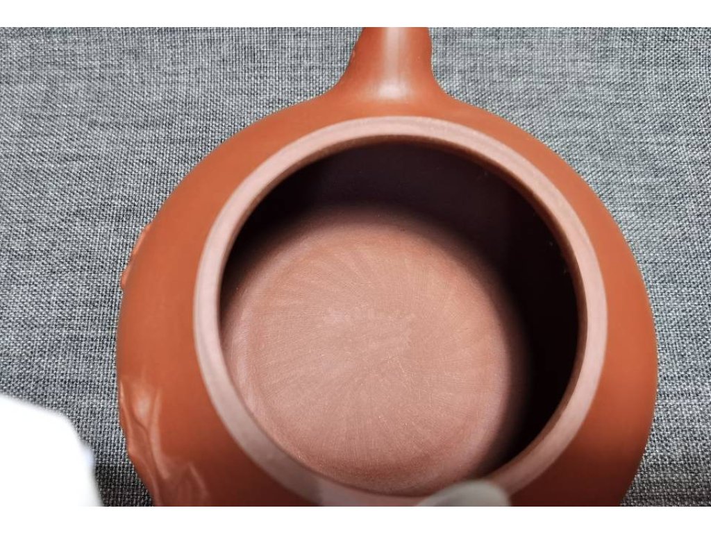 這款大紅袍壽桃壺的壺身圓潤飽滿,線條流暢自然,如一顆熟透的壽桃,一眼便能感受到其濃厚的文化氣息。