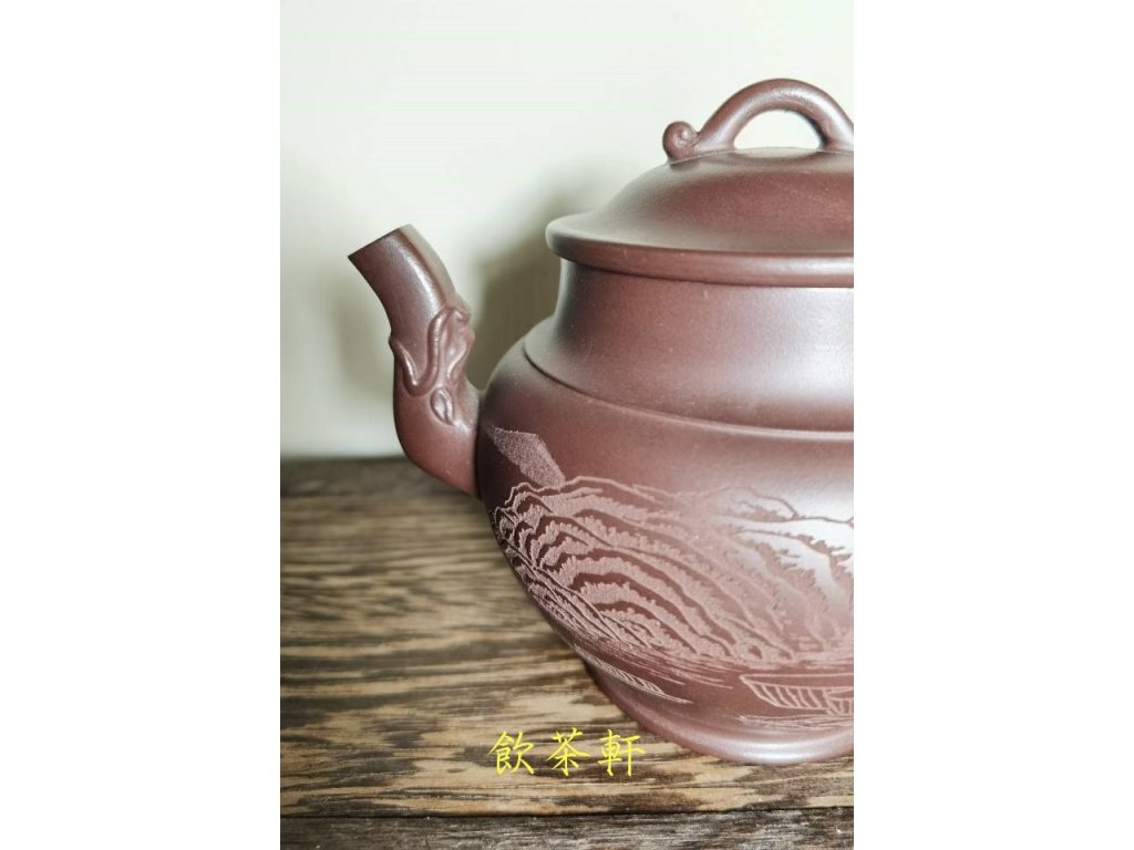 這款紫泥宮燈推板窯燒《山居秋暝》刻繪40目300ml茶壺,以其獨特的造型、精湛的刻繪工藝、出色的出水錶現以及深厚的文化內涵,成為了茶文化中的瑰寶。