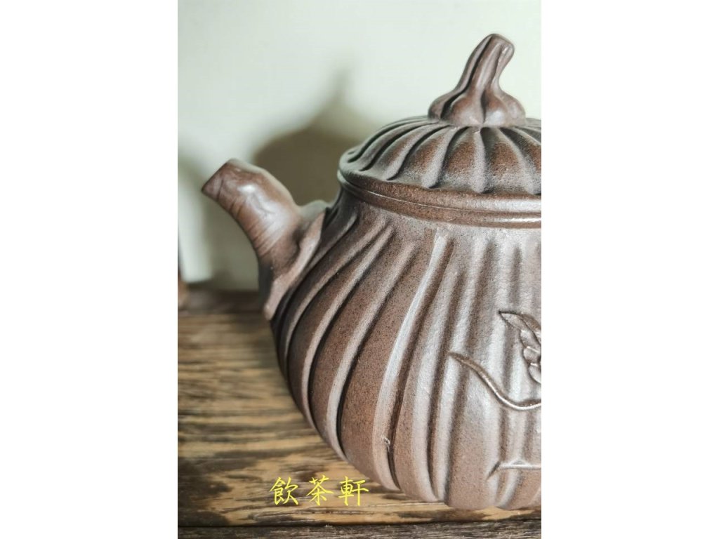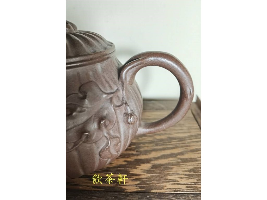 此壺工藝十分生動,筋扭紋設計使得整個壺身仿佛南瓜的樹枝和樹葉纏繞,栩栩如生。