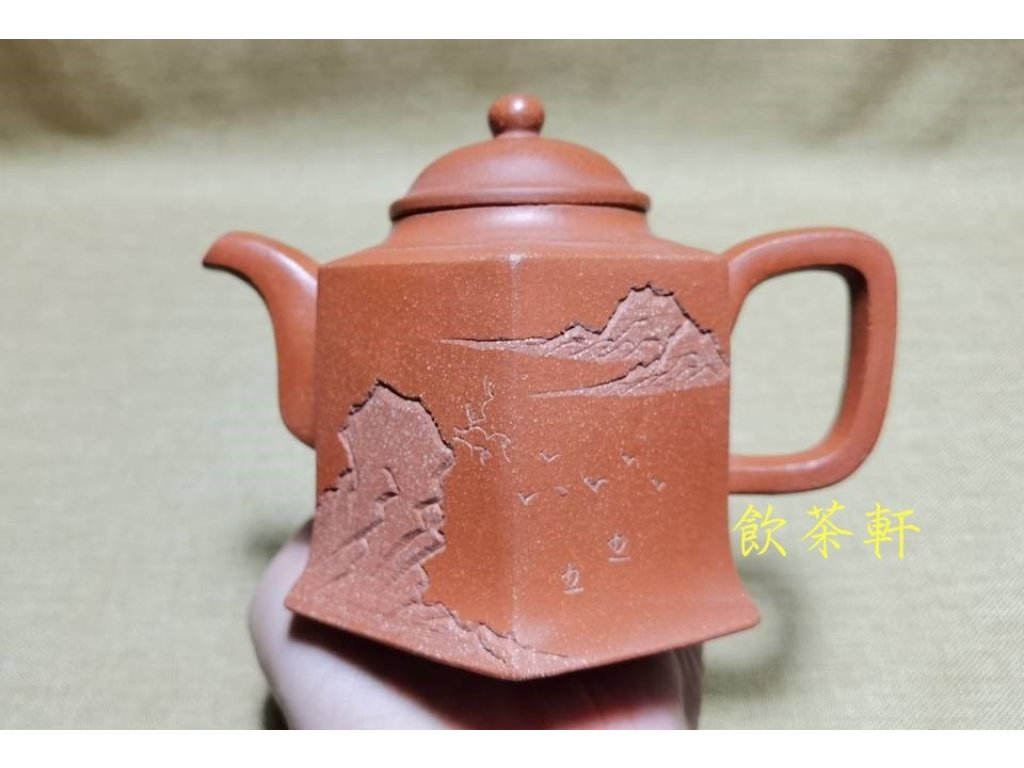 壺身上刻繪,更是此壺的點睛之筆。高山流水,意境深遠,仿佛將自然之景融入壺中,在品茗時也能感受到淡泊名利、靜心修身的意境。這種刻繪不僅增添了壺的藝術價值,也讓每一次泡茶都成為一次心靈的洗禮。