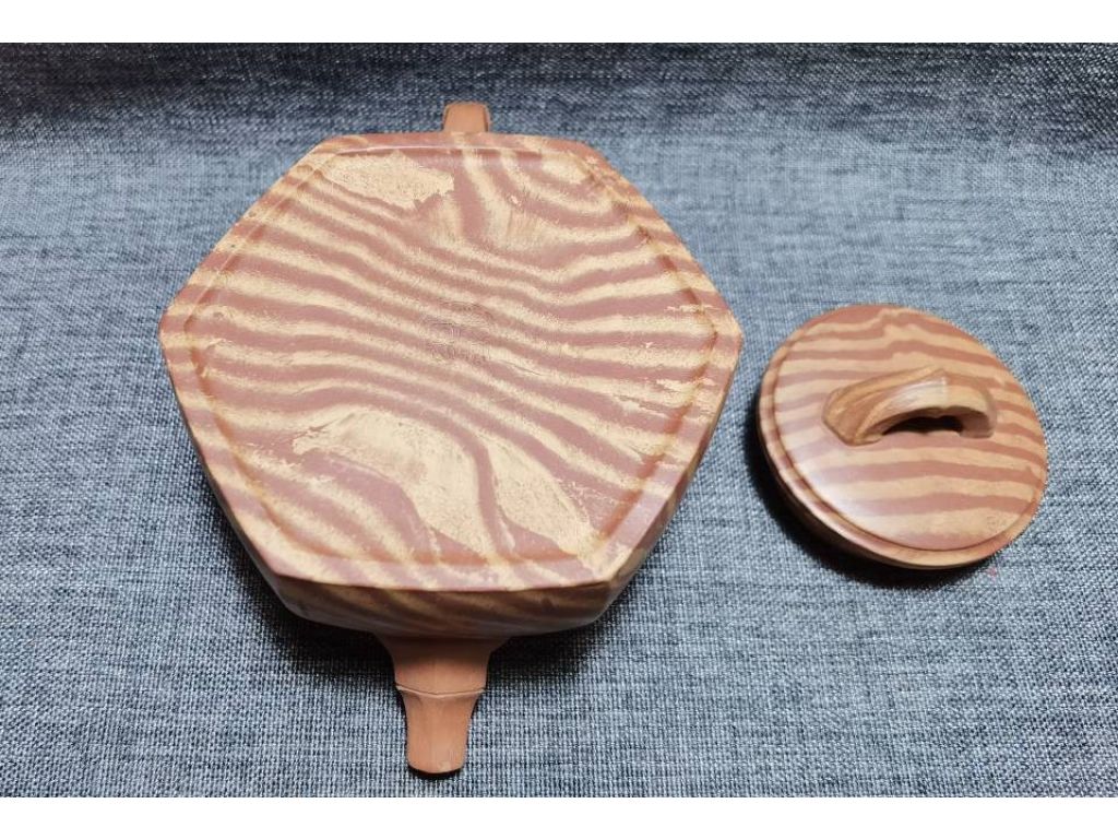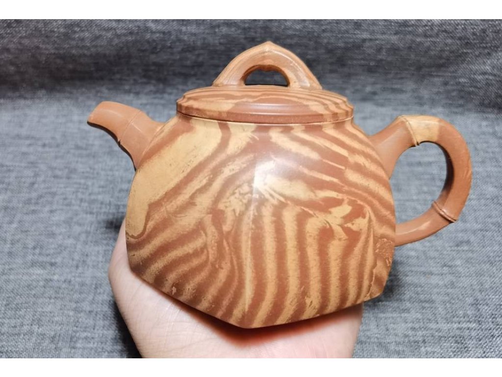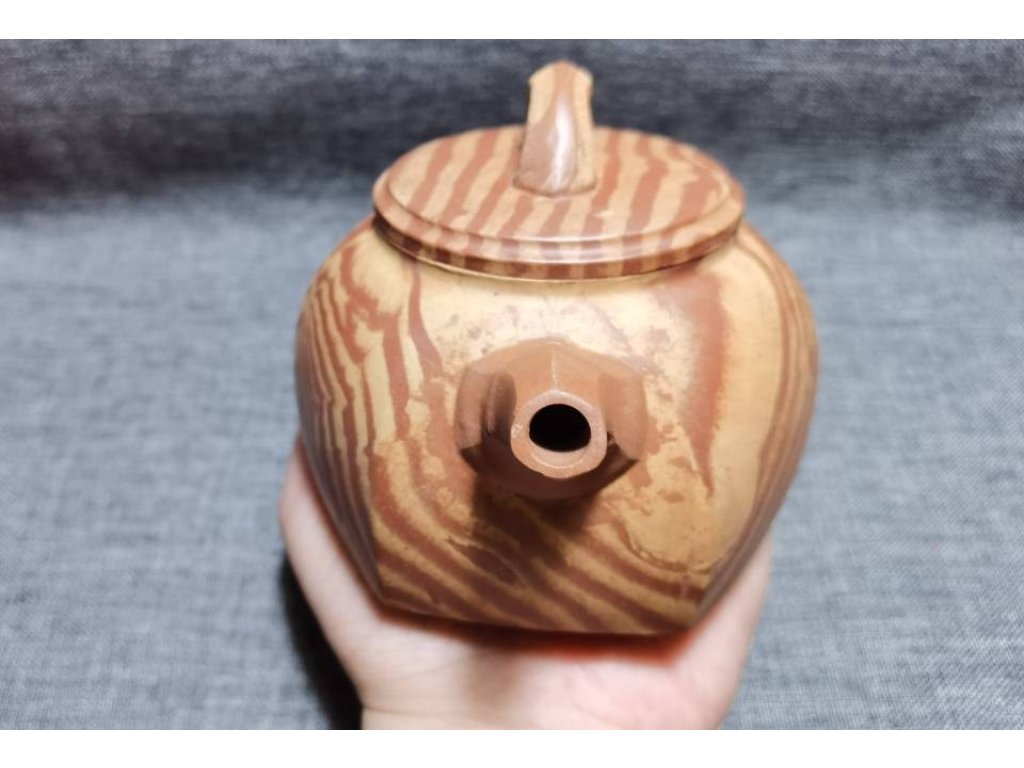 六方井欄壺,造型古樸典雅,線條流暢自然。壺身呈六方形制,每一面都經精心打磨,使得整體造型更加協調統一。