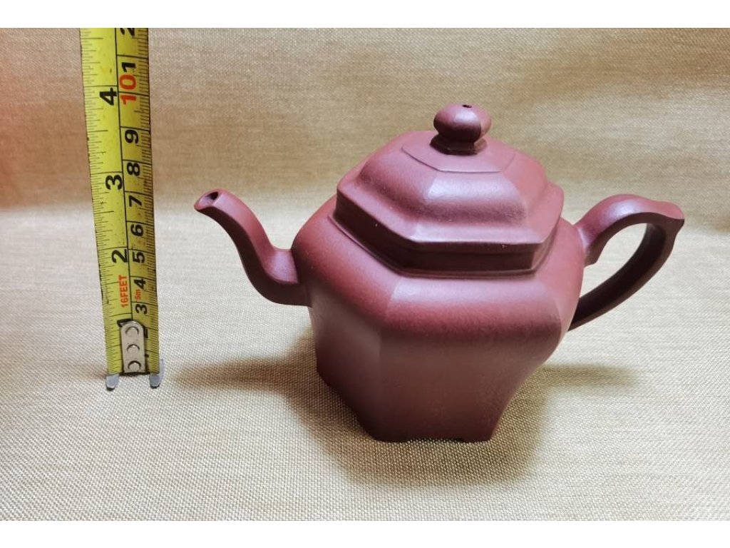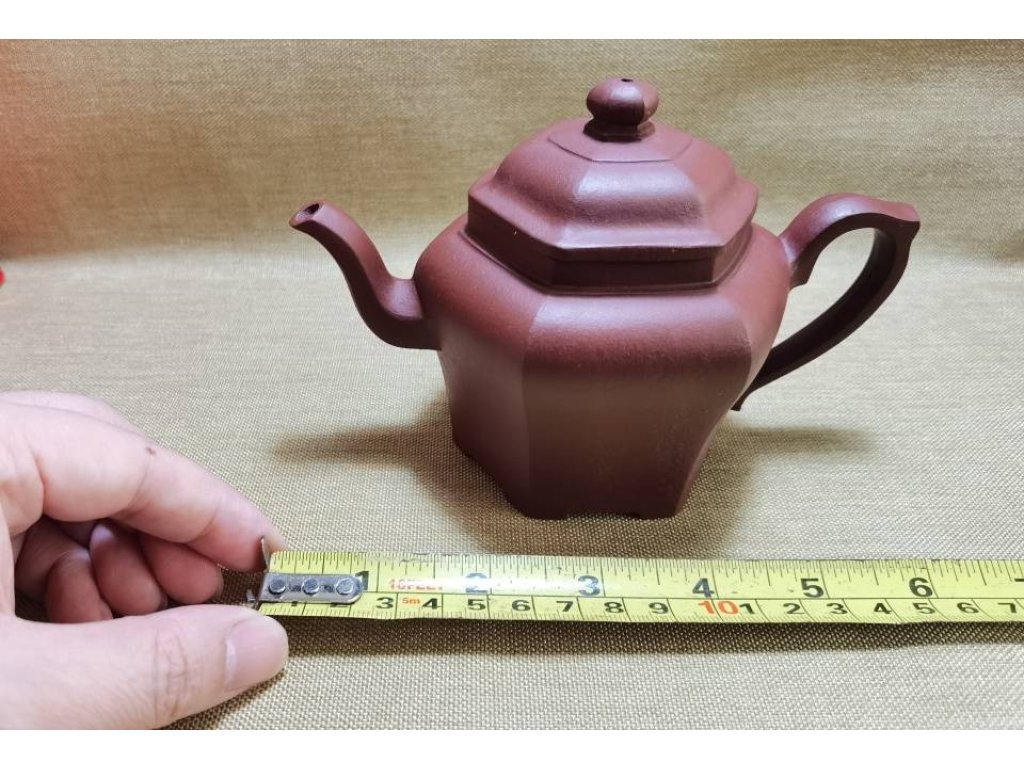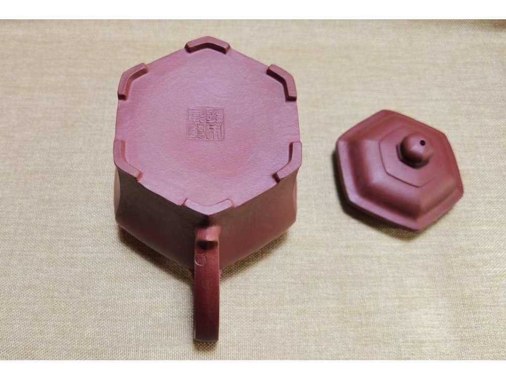 這款壺的壺身呈六方形,線條流暢,弧度婉轉,方中寓圓,展現出獨特的造型美感。