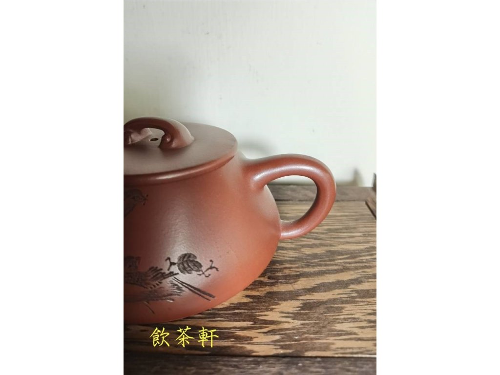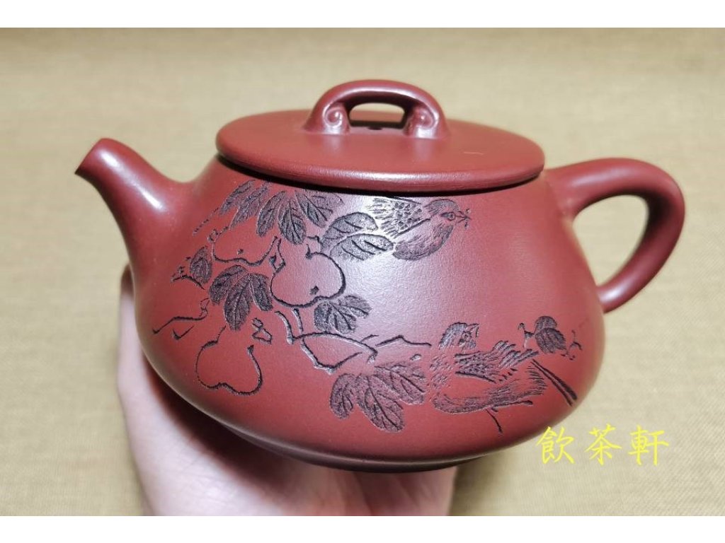 而壺型,則選擇了具有悠久歷史的景舟石瓢。景舟石瓢壺起源于清嘉慶年間,由宜興紫砂壺名師楊彭年製造,經過多代藝人的傳承與創新,成為紫砂壺中的經典之作。這款壺將景舟石瓢的經典造型與現代審美相融合,線條流暢,比例協調,既實用又具有極高的觀賞性。特別是在壺身上,還巧妙地繪製了葫蘆與麻雀的圖案,寓意著福祿雙全、多子多福,不僅增添了壺的趣味性,更體現了匠人的巧思妙想和精湛工藝。