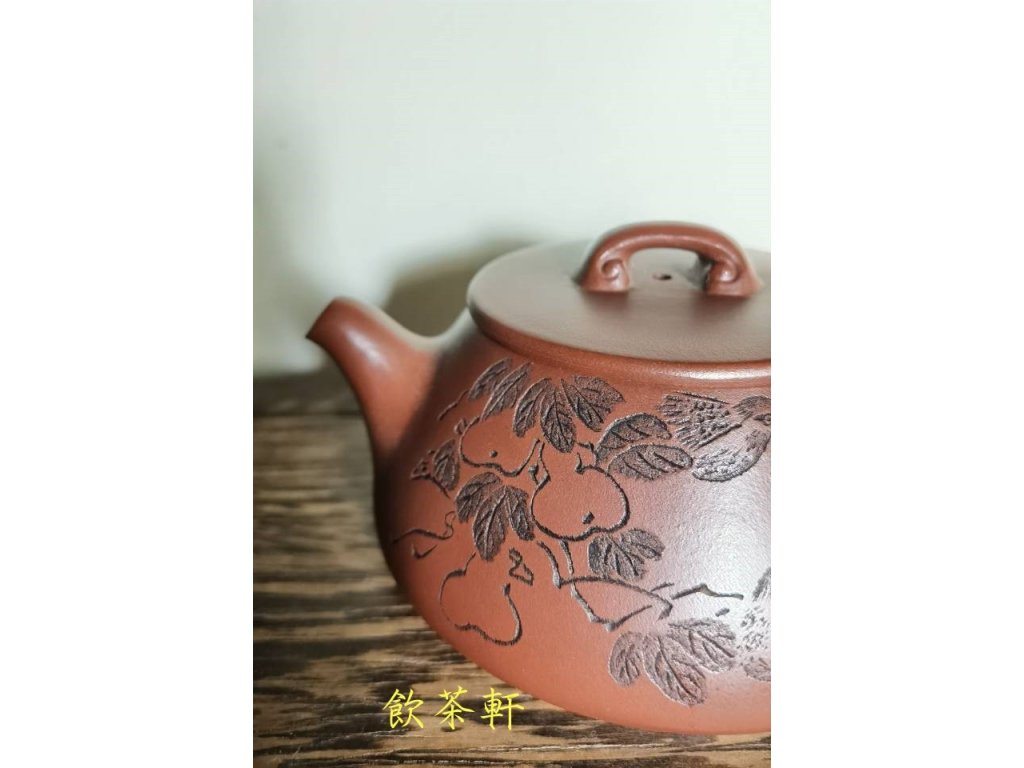 以珍稀龍血砂製成的景舟石瓢壺,上面還裝飾著葫蘆與麻雀的圖案,不僅美觀大方,更蘊含著深厚的文化底蘊。