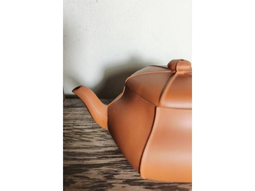 這種工藝不僅考驗技藝和經驗,更需要對火候有著近乎苛刻的掌握。經推板窯燒制的六方君德壺,壺身色澤溫潤,質感細膩,仿佛每一寸都蘊含著匠。