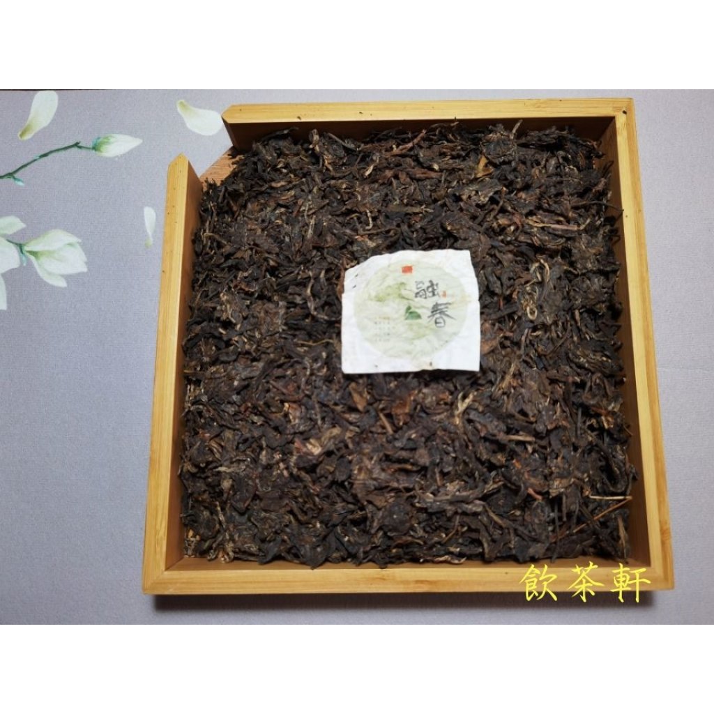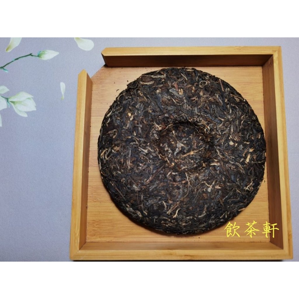 外形:整齊鬆軟,色澤暗綠,餅體堅實,條索粗壯,整齊有序,色澤墨綠