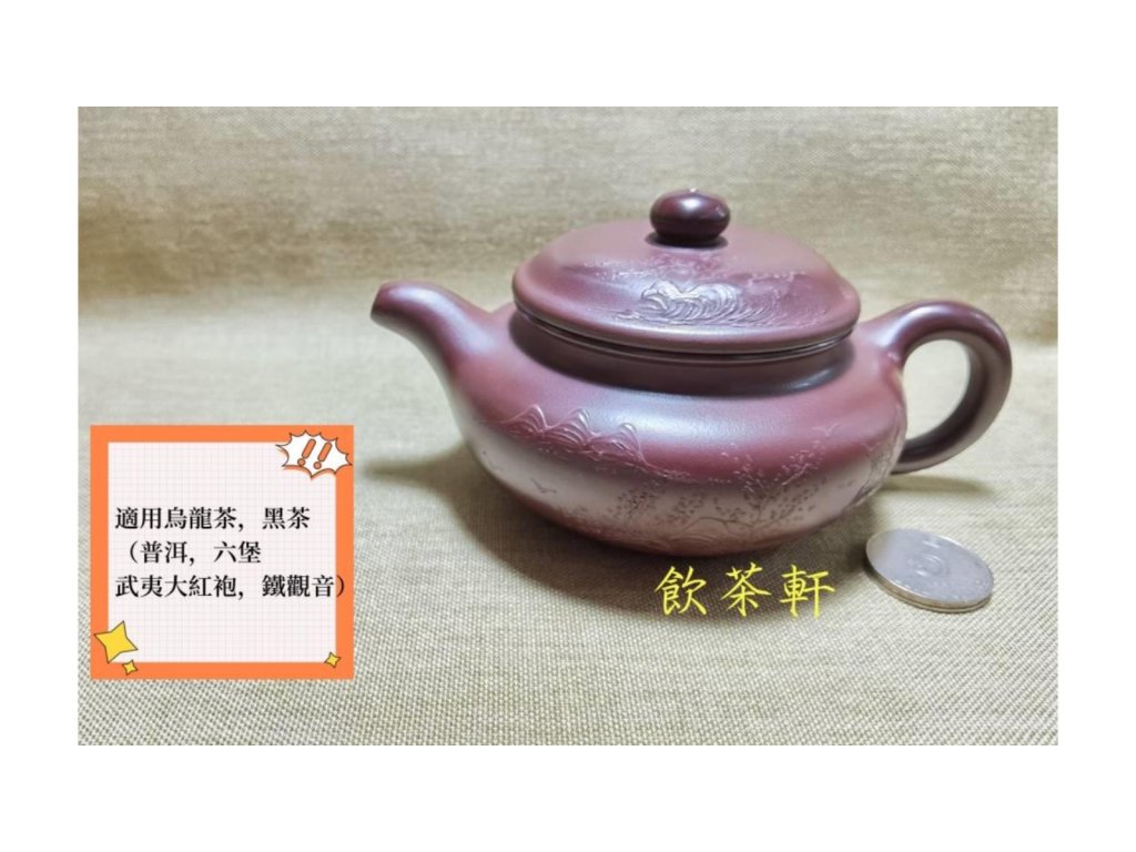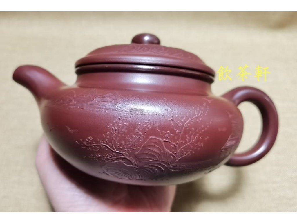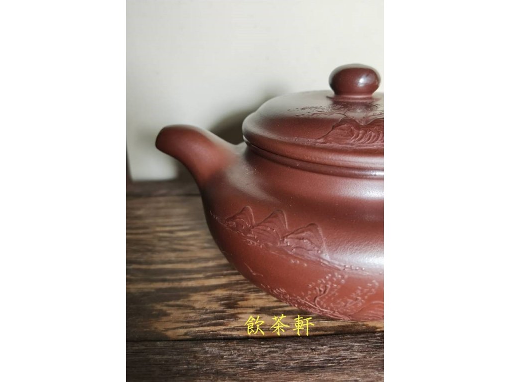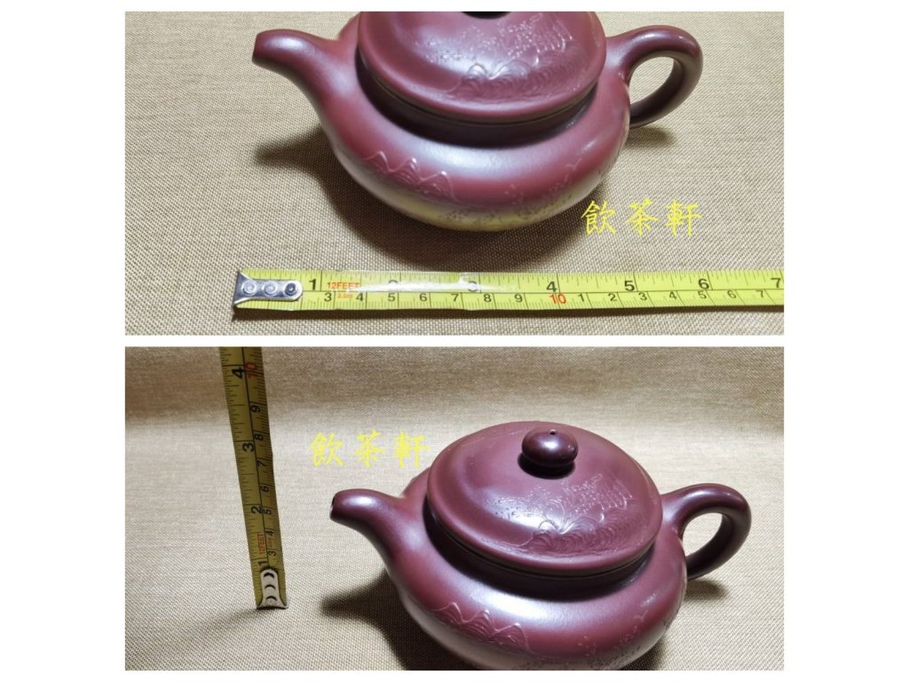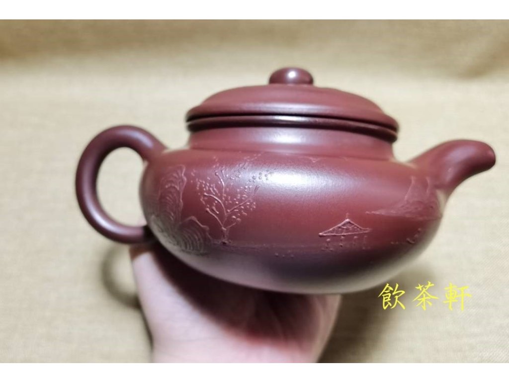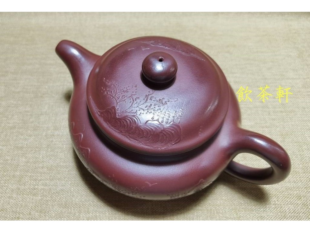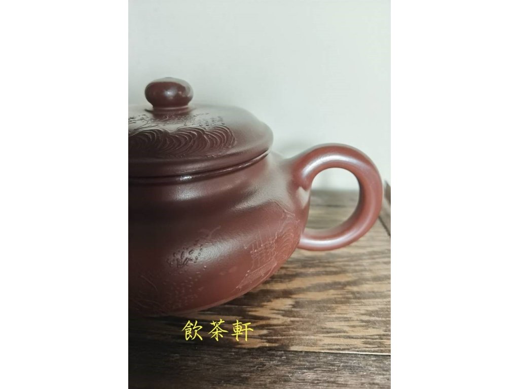 主頁 宜興紫砂 紫泥 仿古壺 高山刻繪 80目 280ml 附壺繩