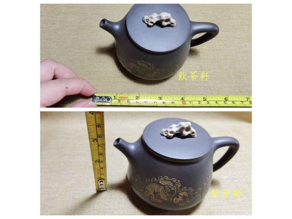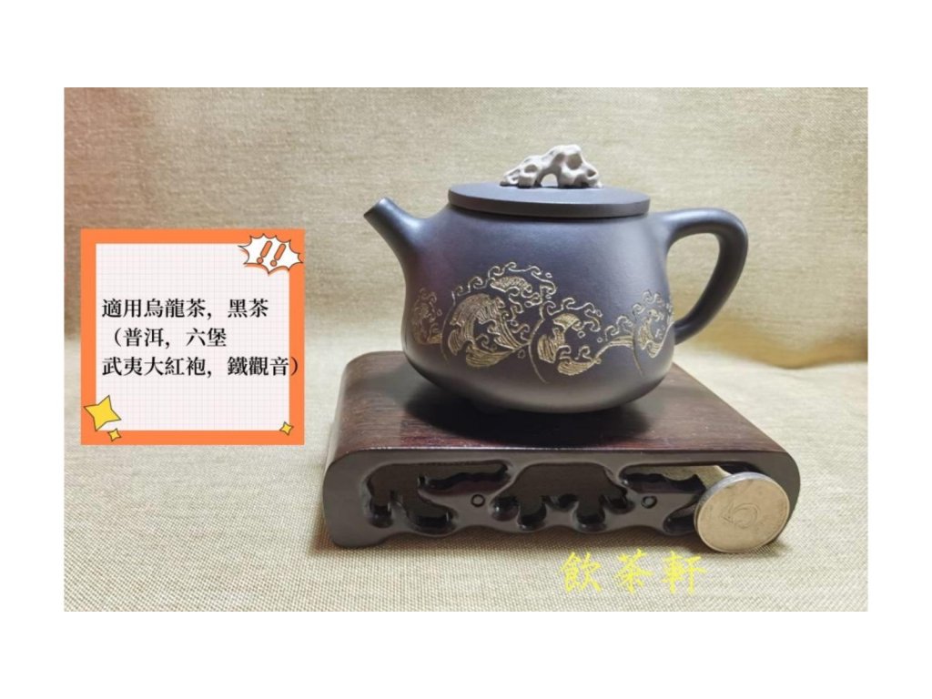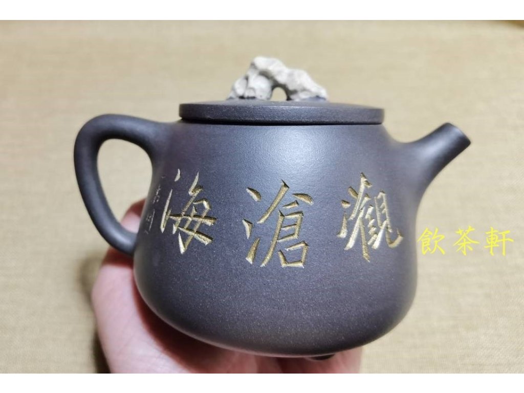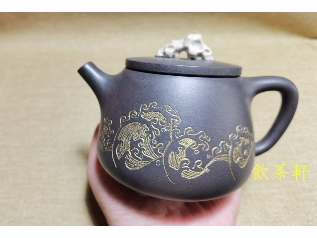 壺身的海浪刻繪,是此壺的點睛之筆。匠人以精湛的刀工,將海浪的翻湧、波瀾壯闊之勢刻畫得栩栩如生,仿佛能聽到海浪拍岸的聲音,感受到大海的遼闊與深邃。而壺鈕則設計為珊瑚山形,既增添了壺的趣味性,又與海浪相呼應,共同構建了一幅“觀滄海”的壯麗圖景,引人遐想。