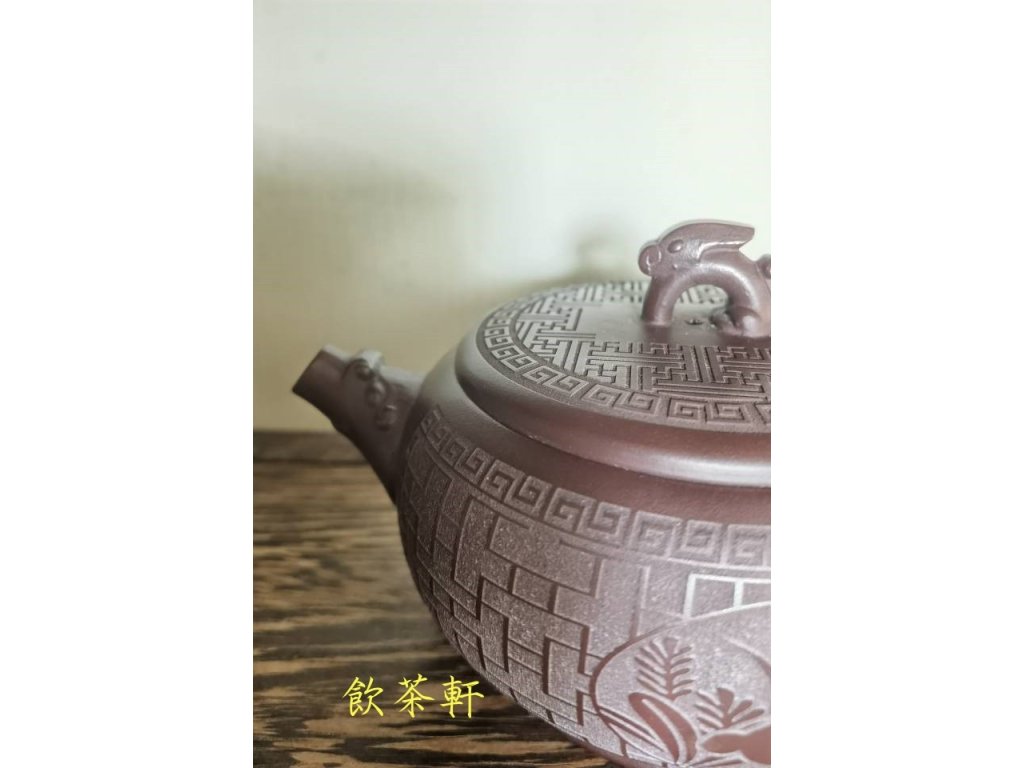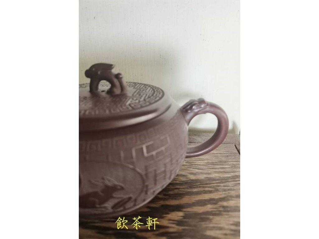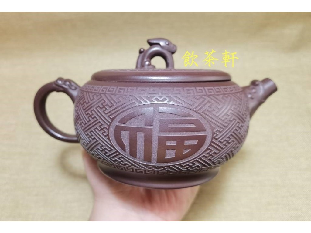 在紫泥扁鼓壺上,精美的書法或圖案刻繪,這些元素不僅增添了壺的藝術感,更是對傳統文化的熱愛和追求的體現。特別是當這些圖案與福字、玉兔等寓意吉祥的元素相結合時,更使得這款壺充滿了文化的厚重感和美好的祝願。