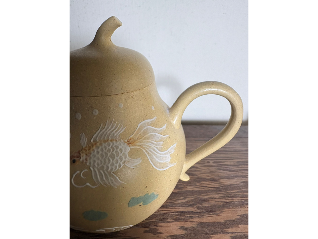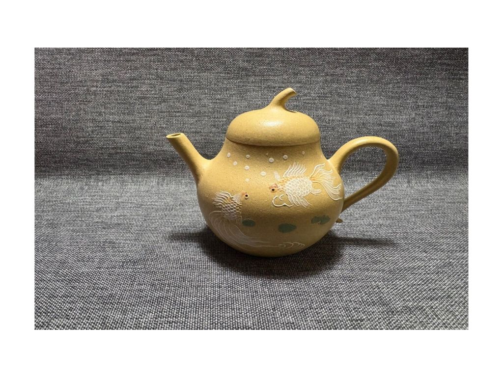 手繪雙魚則是其靈魂所在。壺身上的雙魚圖案,採用了泥繪工藝,以細膩的筆觸勾勒出雙魚的靈動與飄逸。