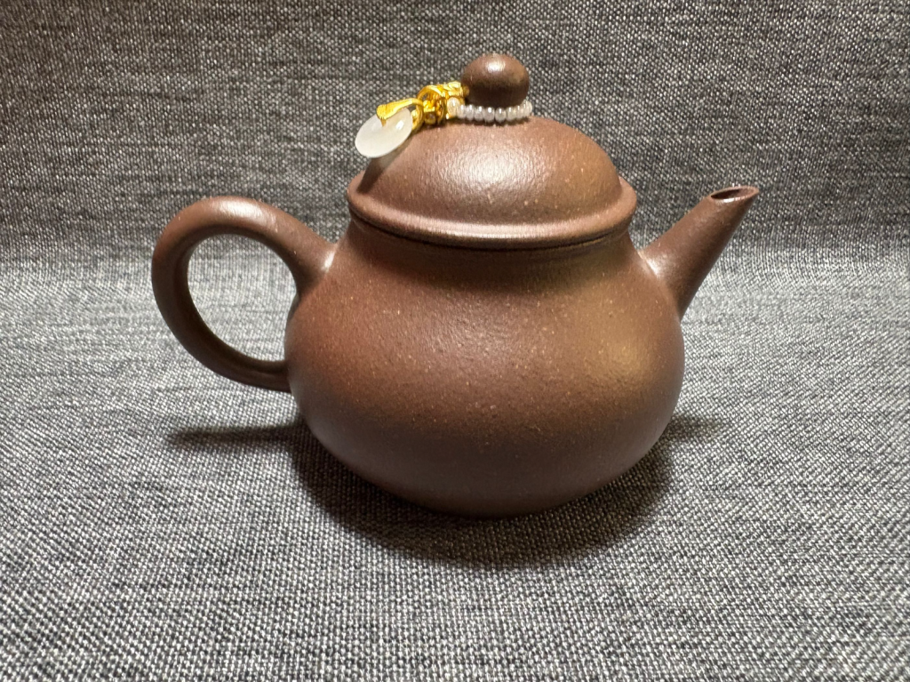 此款壺採用80目的泥料,經過推板窯燒後,壺身表面呈現出細膩而均勻的顆粒感,觸感溫潤,質感十足。130ml的容量,小巧精緻,既適合日常品茗使用,也便於收藏把玩。