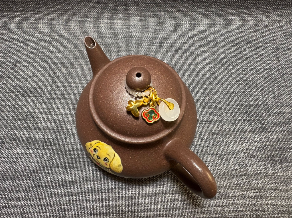 在品茗時,手持這把帶有黃小狗圖案的潘壺,看著那活潑的小狗形象,仿佛能感受到一份輕鬆與愉悅。
