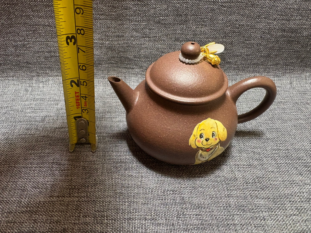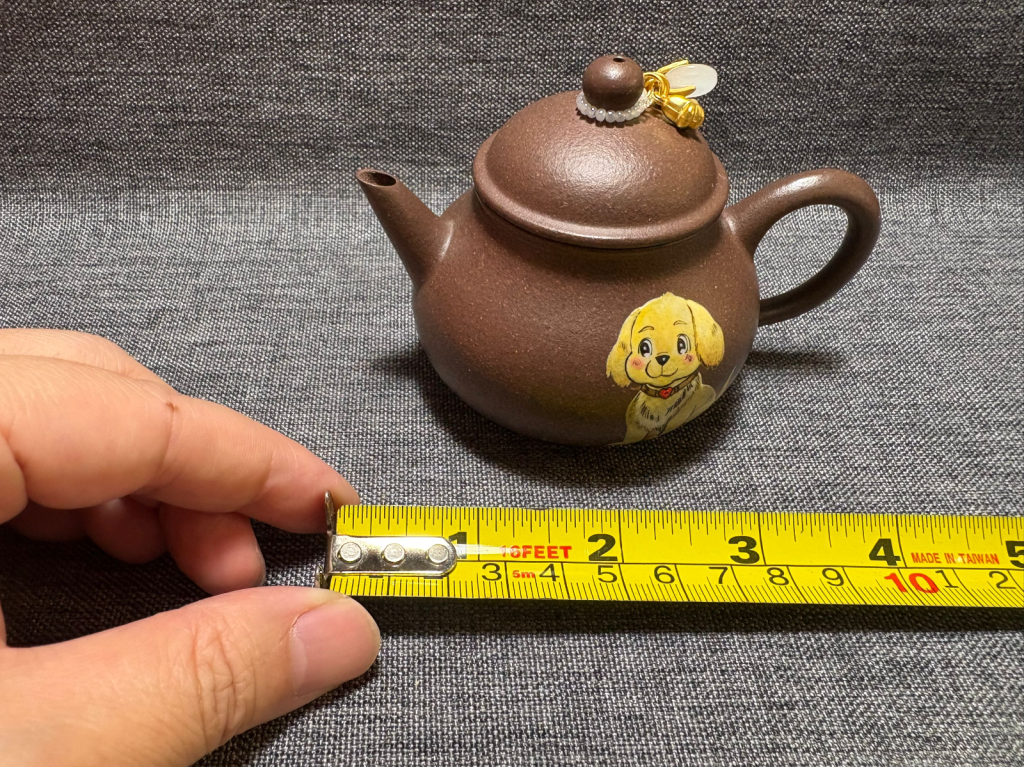主頁 半手工 梨皮紫泥 薄胎精品小潘壺 推板窯燒 黃小狗手繪 80目 130ml