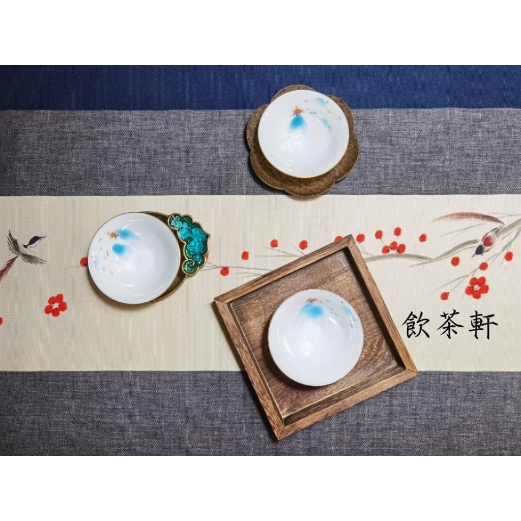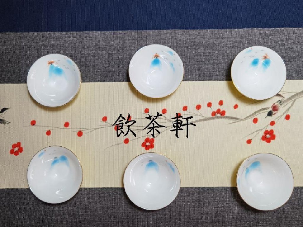 每一個杯子都是由工藝精益的工匠們手工繪製而成,呈現出六款不同淺藍色墨水畫中式山色圖案,更加彰顯出其尊貴品味。
