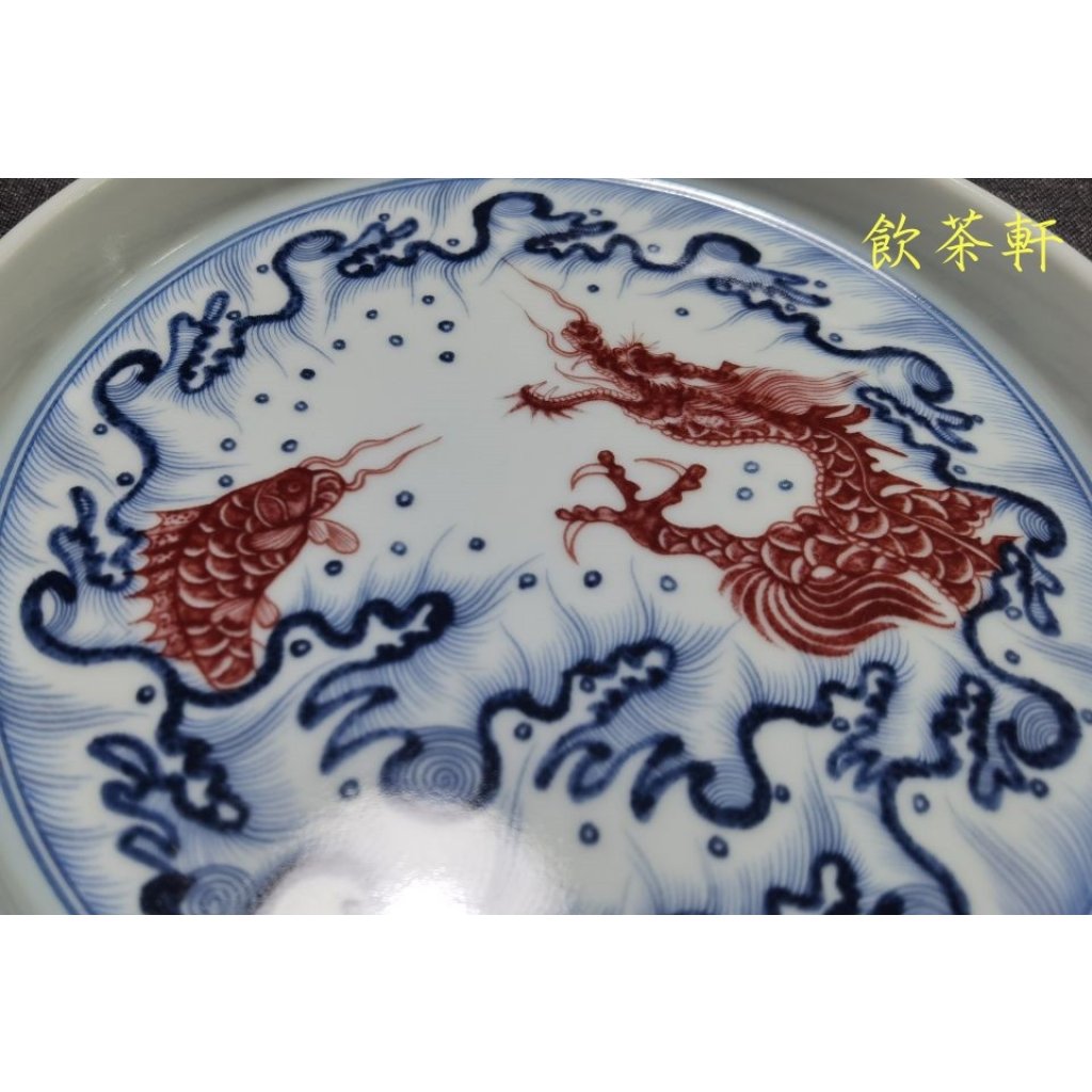 景德鎮陶瓷壺承茶杯托釉裡紅魚化龍