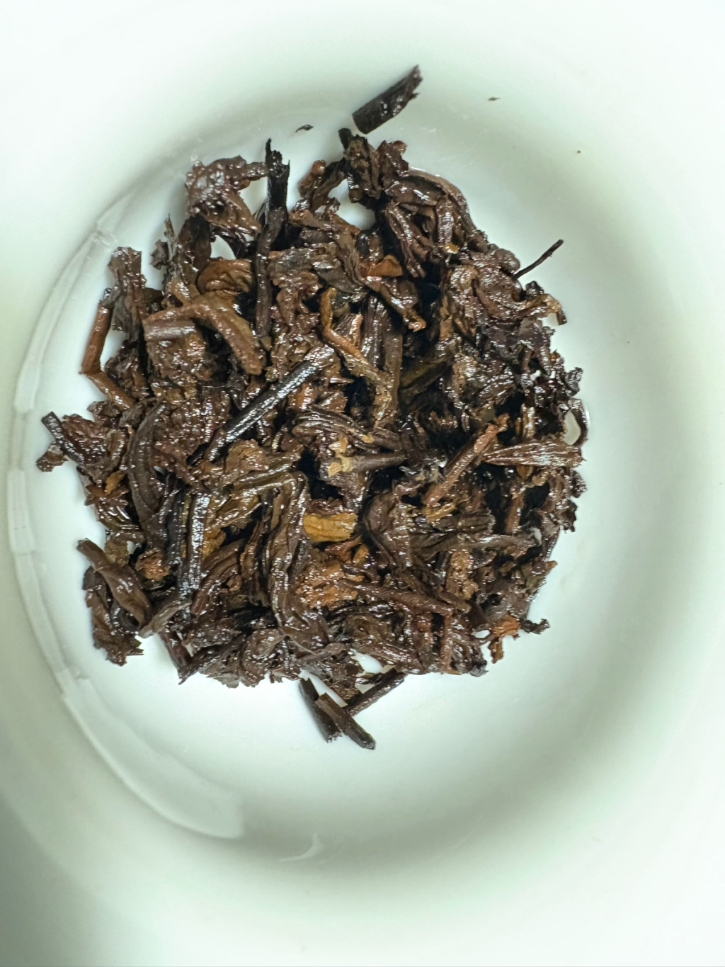 茶湯:湯色紅明透亮,散發出糖香和木香的香氣,茶湯略帶陳韻,帶有陳化的風味,茶梗的添加使茶湯更加豐富和耐泡,留下持久的餘韻。